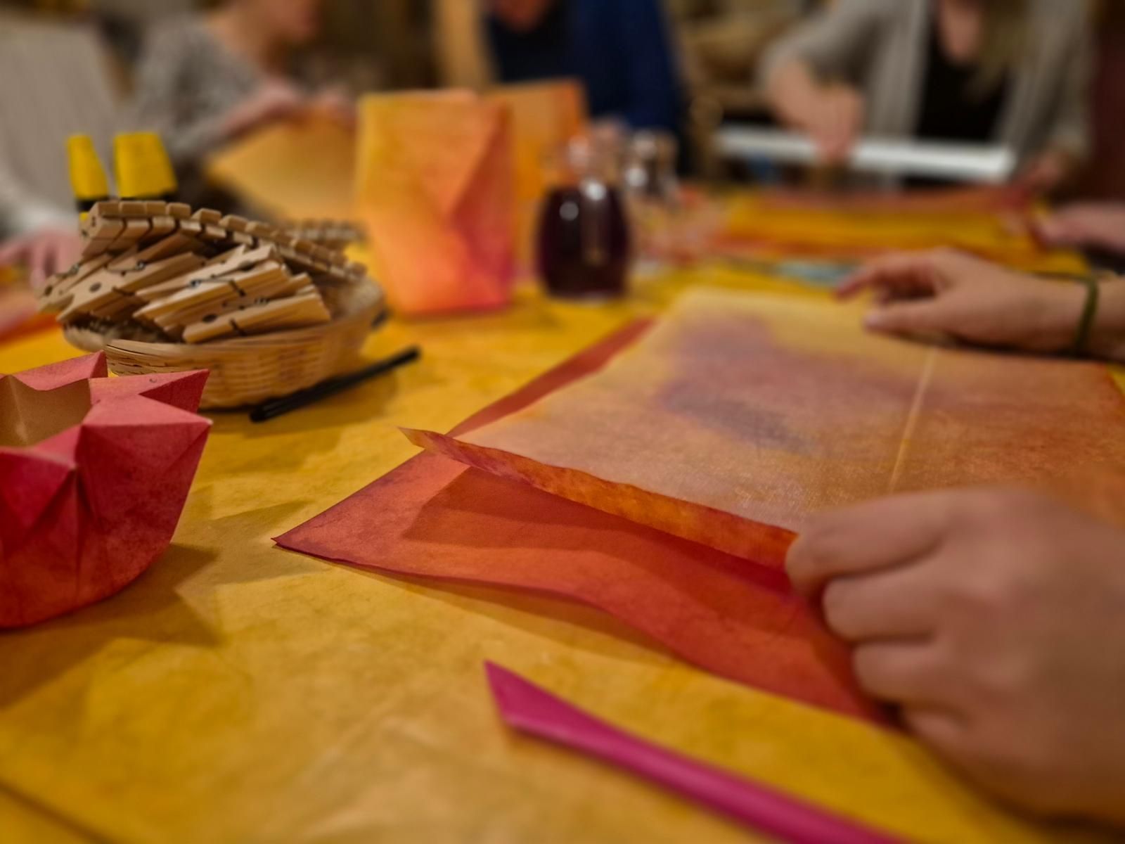 Die Elternabende der Sonnen- und Sternengruppe haben wir in diesem Jahr mit gemeinsamen Falten und Kleben der Laternen verbunden. Bei Punsch und Keksen entstanden schöne Einzelstücke.
